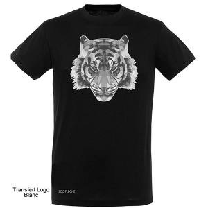 T-shirt unisexe Tigre Blanc + transfert Zoo de la Flèche en Bas à droite Noir Profond XS
