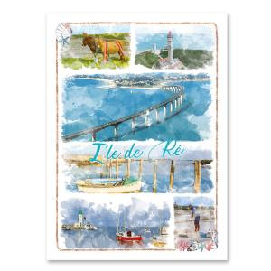 Torchon all-over Aquarelle Île de Ré Phare des Baleines Blanc Taille unique