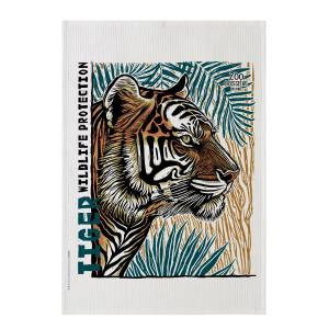 Torchon all-over Nid D'abeille Tigre Linocut Zoo Boissière du Dore Blanc Taille unique