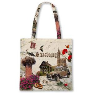 Tote bag all-over Vue avec 2 CV Strasbourg Alsace Blanc Taille unique