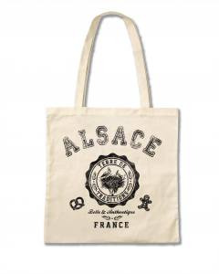 Tote bag sérigraphie Alsace France Vintage (Version Noir Ou Rouge) Ecru Taille unique